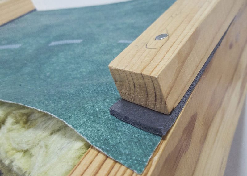 • Возможны 2 варианта монтажа: наклеивается поверх плёнки вдоль стропильных ног либо на контробрешётку перед её установкой.