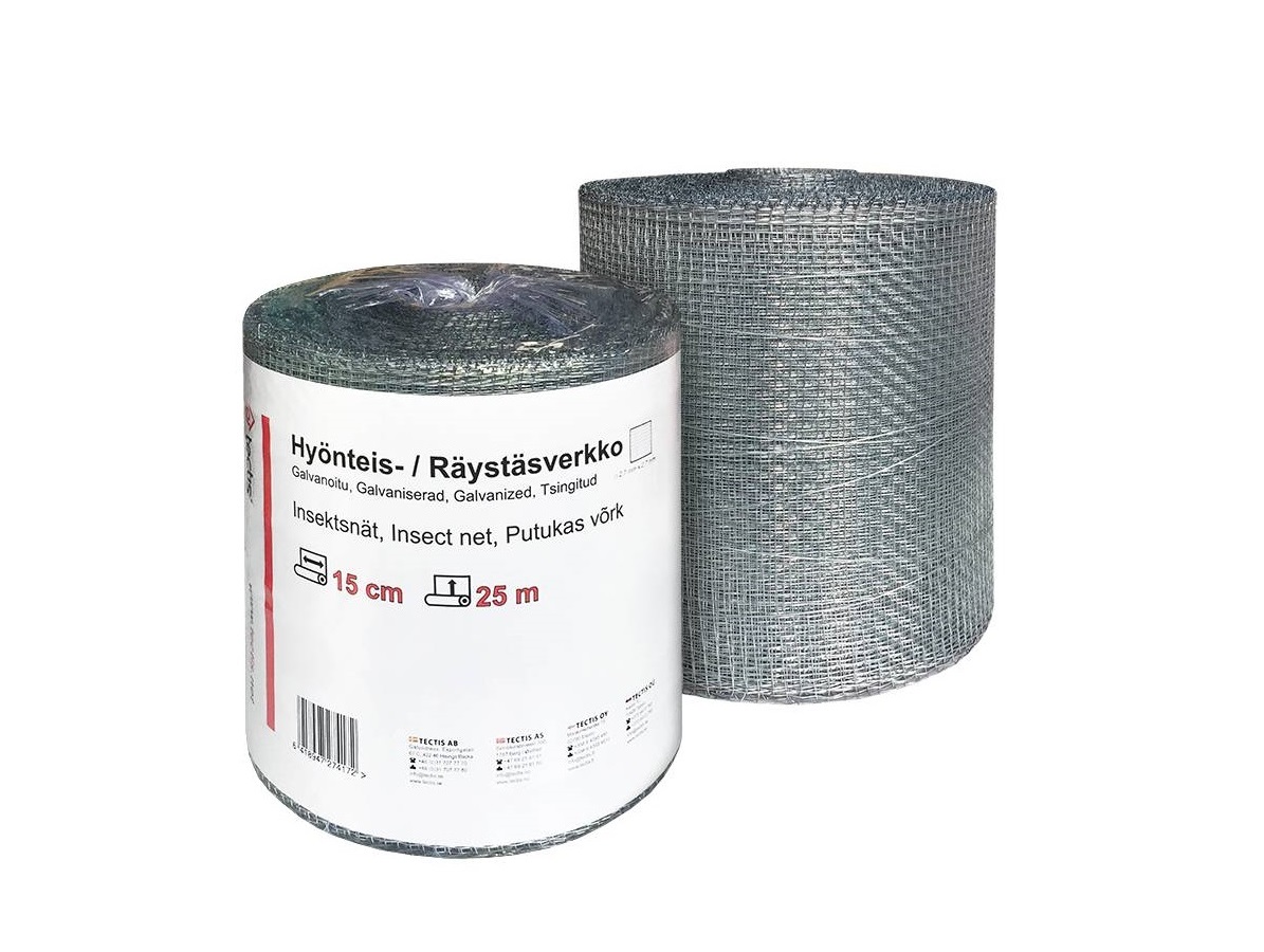 Гальванизированная сетка от грызунов Tectis с ячейкой 2,7 х 2,7 мм применяется для защиты здания от грызунов и насекомых и устанавливается перед вентиляционными отверстиями.