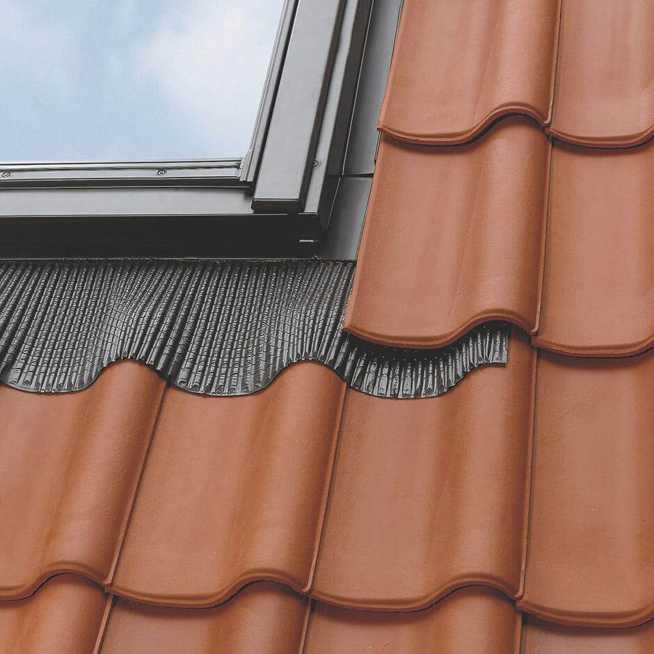 Оклад для профилированных кровельных покрытий EDW MK08 изготавливаются из алюминиевого листа серого цвета (близкого к цвету RAL 7043), который гармонично сочетается с типичными цветами кровельных покрытий. Предназначен для установки одного окна Velux в кровельное покрытие (металлочерепица, профнастил) с высотой профиля до 120 мм.