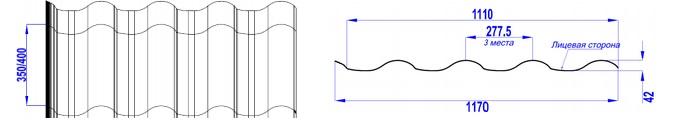 Шаг волны 350/400 мм