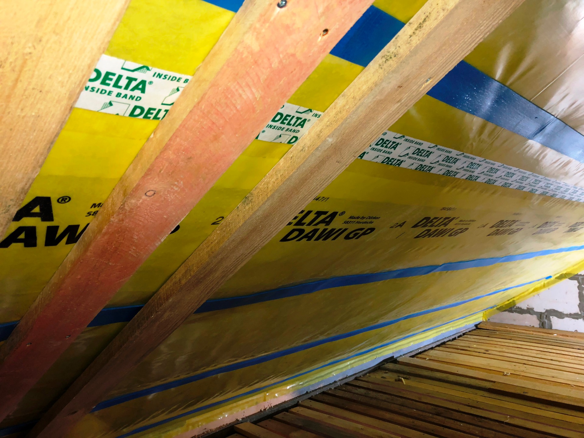Пароизоляционная пленка DELTA® Dawi GP применяется в жилых домах, а также в помещениях с повышенной влажностью (бассейны, ванные комнаты, кухни и т.д.). Нахлёсты рулонов ОБЯЗАТЕЛЬНО проклеиваются между собой односторонней лентой DELTA®-MULTI-BAND либо двусторонней лентой DELTA®-DUO TAPE. Для примыкания к стенам применяется клей DELTA®-TIXX. Перед проклейкой нужно обязательно обработать зону нахлёста от пыли. Кроме того рекомендуется заклеивать лентой DELTA®-MULTI BAND и места крепления плёнки скобами.