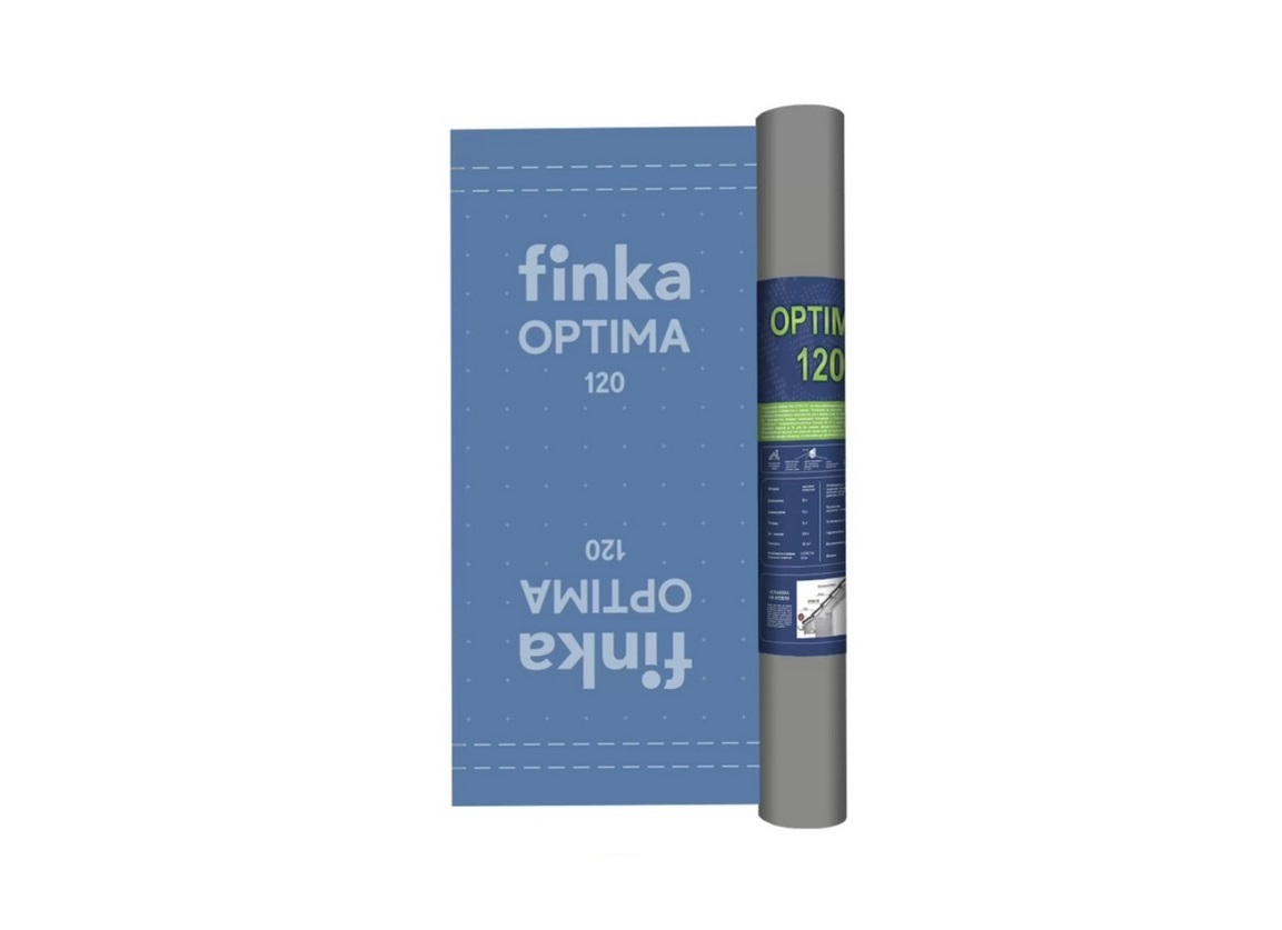 Finka Optima 120  – это  3-хслойная диффузионная мембрана, состоящая из функционального (дышащего) слоя, произведенного в Германии, и внешних слоев из первичного нетканого полипропилена. Монтируется поверх утеплителя под обрешетку.