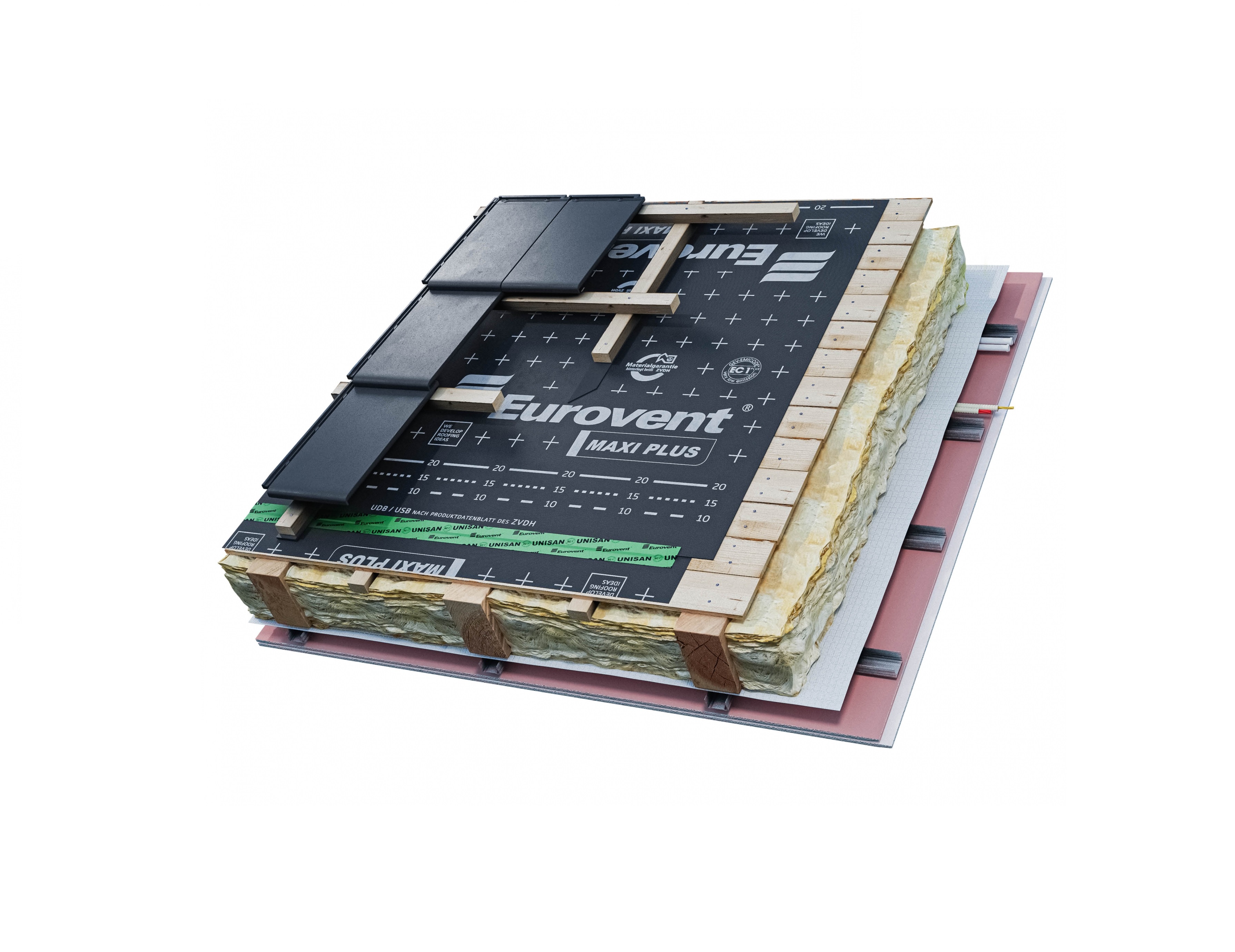 Eurovent MAXI PLUS  - диффузионная трехслойная кровельная мембрана, которая обеспечивает защиту теплоизоляции от конденсата.