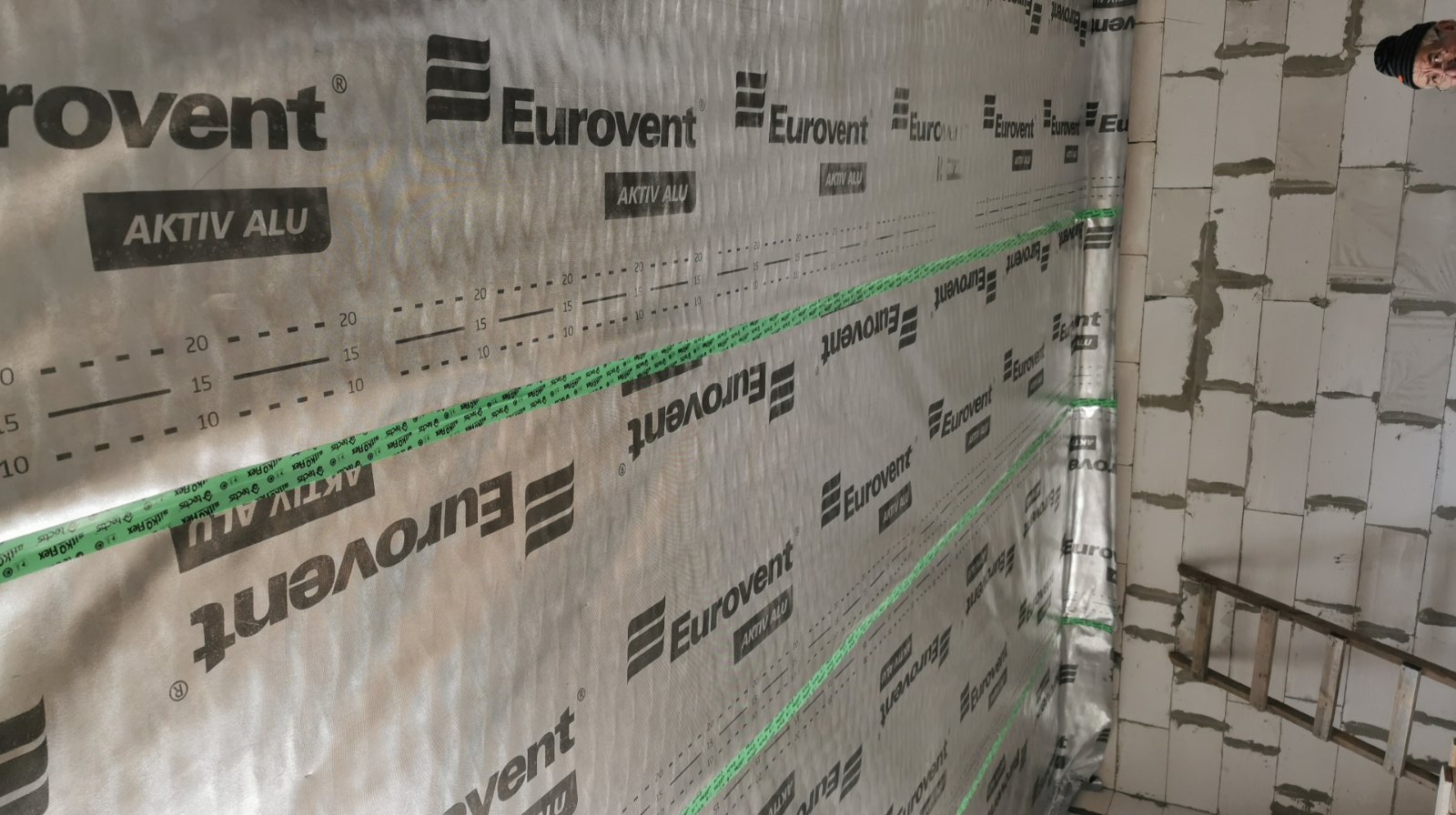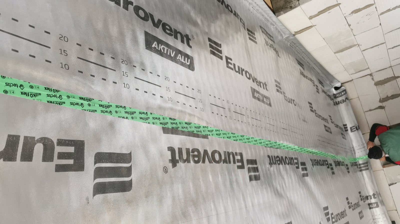 Пароизоляционная мембрана Eurovent AKTIV ALU применяется в жилых домах для снижения теплопотерь, а также в помещениях с повышенной влажностью (бассейны, ванные комнаты, кухни и т.д.). Нахлёсты рулонов ОБЯЗАТЕЛЬНО проклеиваются между собой односторонней лентой (DELTA MULTI BAND либо Tectis Sitko FLEX). Для примыкания к стенам применяется клей DELTA®-TIXX либо бутил-каучуковая лента. Перед проклейкой нужно обязательно обработать зону нахлёста от пыли. Кроме того рекомендуется заклеивать лентой в виде кусочков 1 см х1 см и места крепления плёнки скобами.