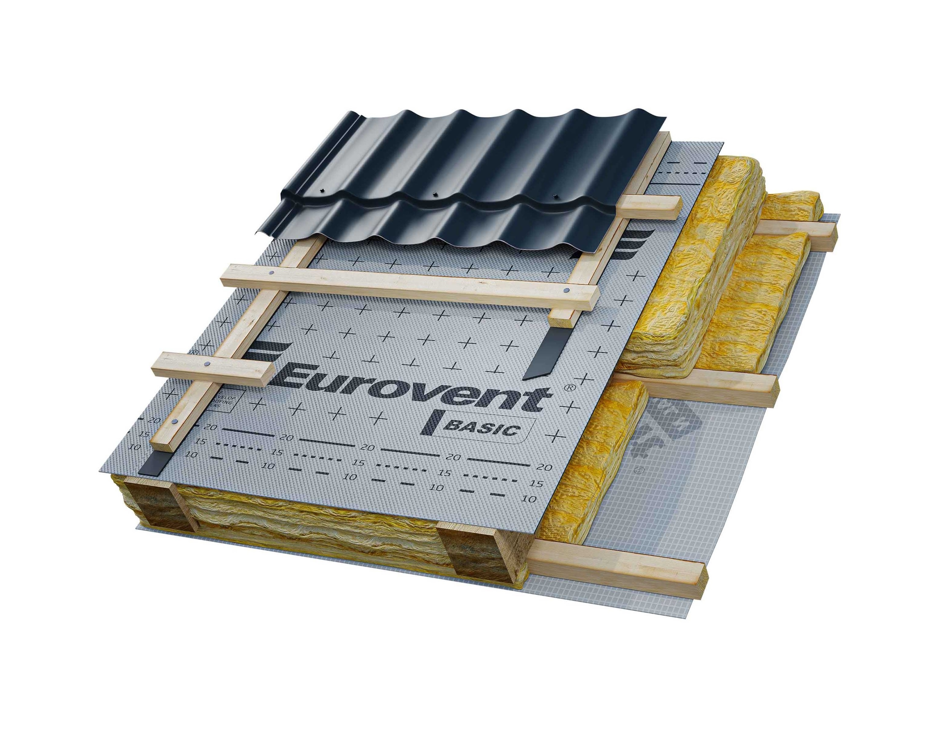 Eurovent Basic - диффузионная трехслойная кровельная мембрана, которая обеспечивает защиту теплоизоляции от конденсата.