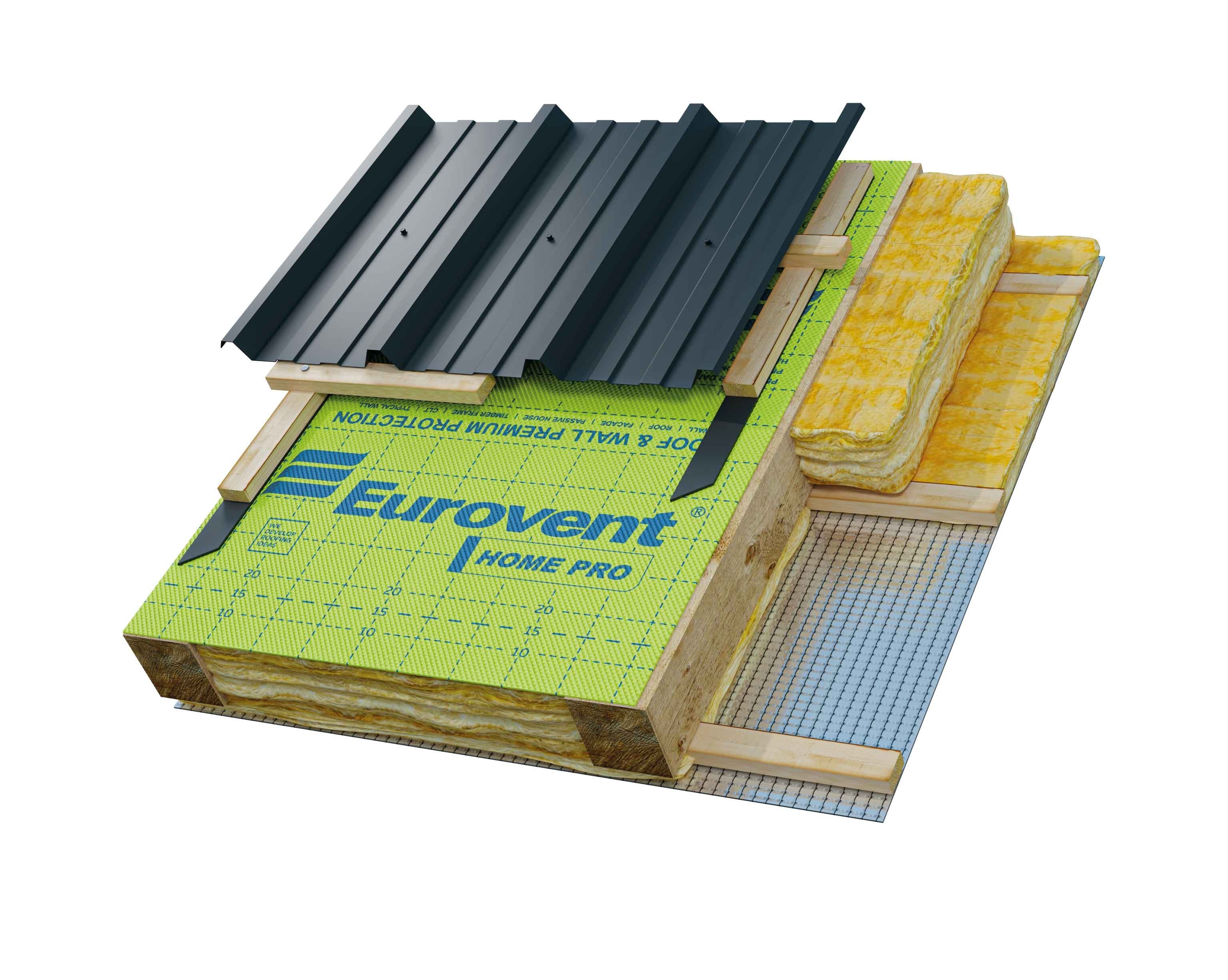 Eurovent HOME PRO - диффузионная трехслойная кровельная мембрана, которая обеспечивает защиту теплоизоляции от конденсата.