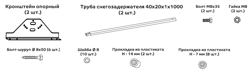Комплектация снегозадержателя трубчатого дл.1000 мм:
