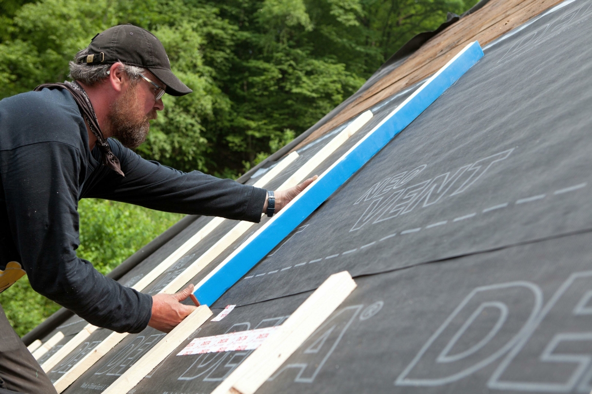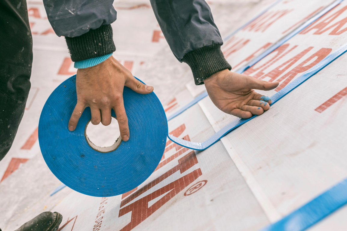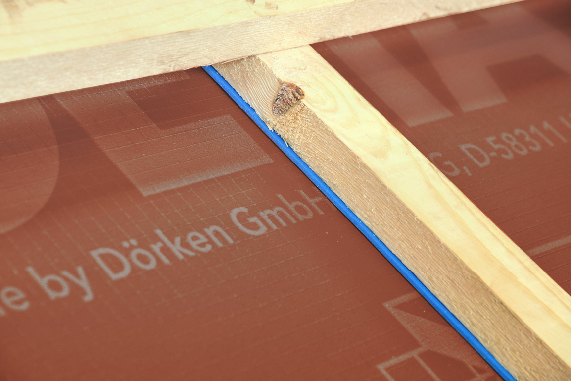 • Возможны 2 варианта монтажа: наклеивается поверх плёнки вдоль стропильных ног либо на контробрешётку перед её установкой.