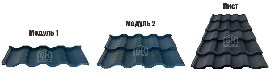 Гибридная металлочерепица (модульная/листовая) - самый популярный и экономичный с точки зрения отходности кровельный материал, реализуемый в виде 1 и 2-волновых модулей либо целыми листами необходимой длины, которые можно компоновать между собой.