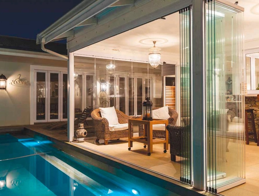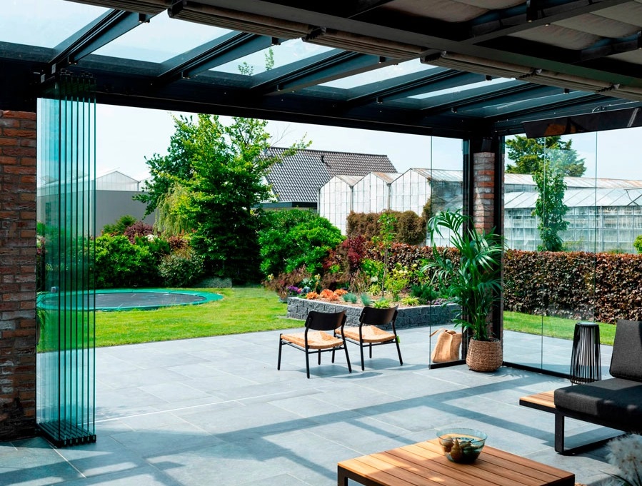 Поворотно-складная система LARGO Book пприменяется как для прямых, П- и Г-образных линий остекления, так и нестандартных полукруглых и круглых беседок, беседок в форме трапеций и многоугольников. Створки данной системы плавно и тихо двигаются по верхнему и нижнему алюминиевому профилю и складываются по принципу книжки с одной либо двух сторон.