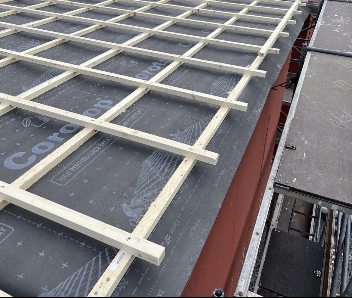 3. Чтобы обеспечить герметичность на стропилах, рекомендуется приклеить полосу уплотнительной ленты (Coropur) к обрешетке на стороне, прилегающей к мембране и стропилам.