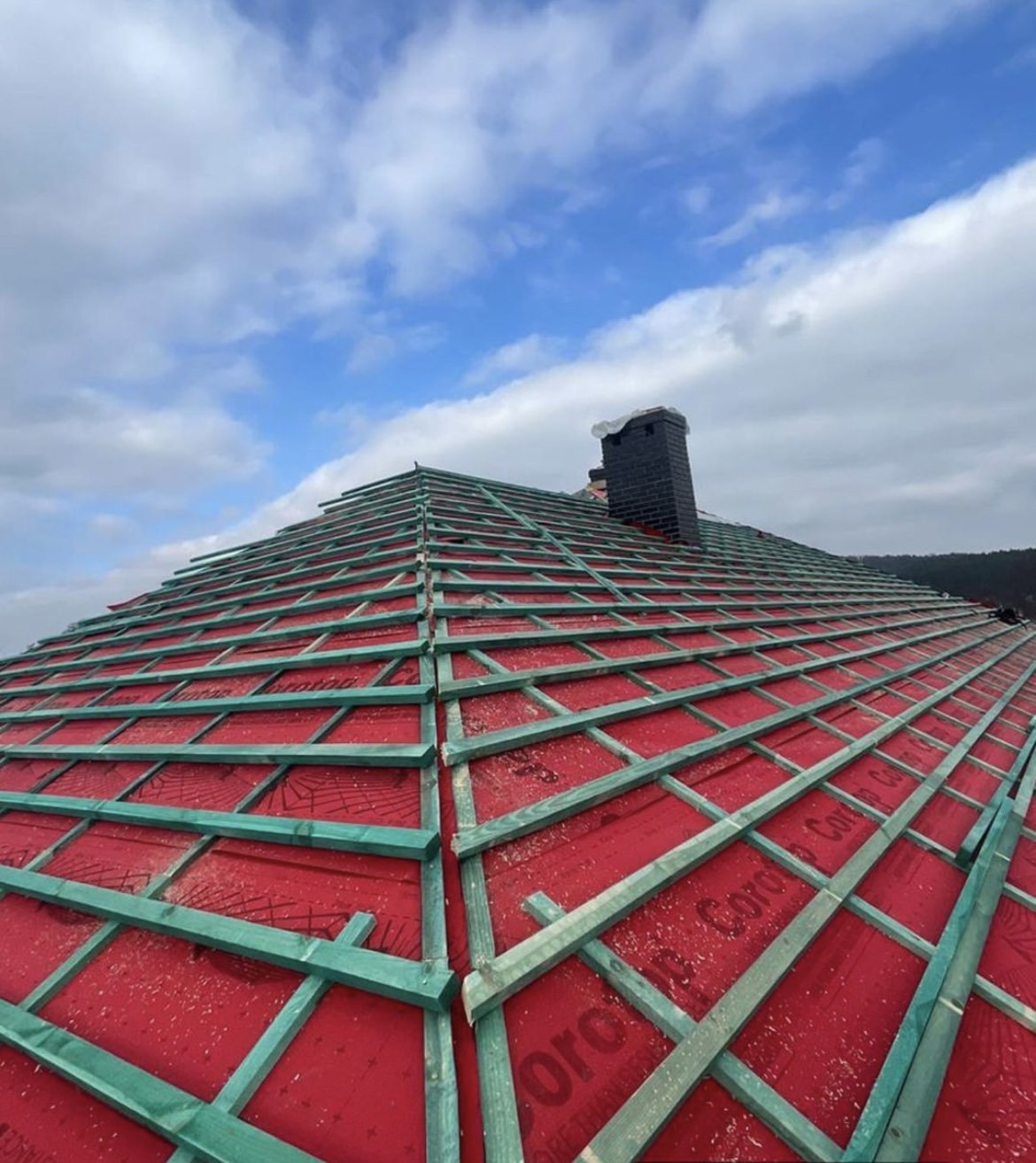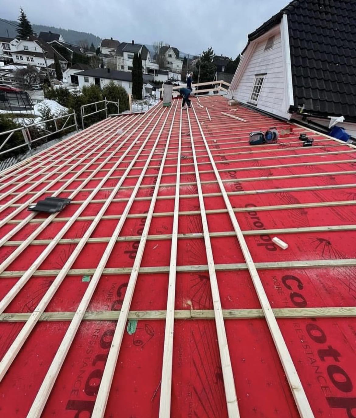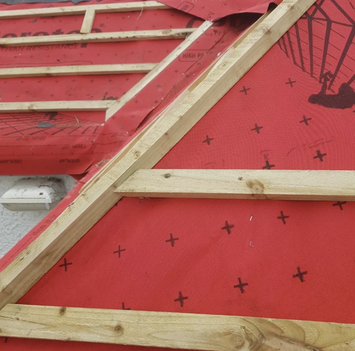 4. Установить обрешетку и контррейку высотой около 8-10 см. Места прокола мембраны гвоздями или скобами следует покрыть герметизирующей лентой.