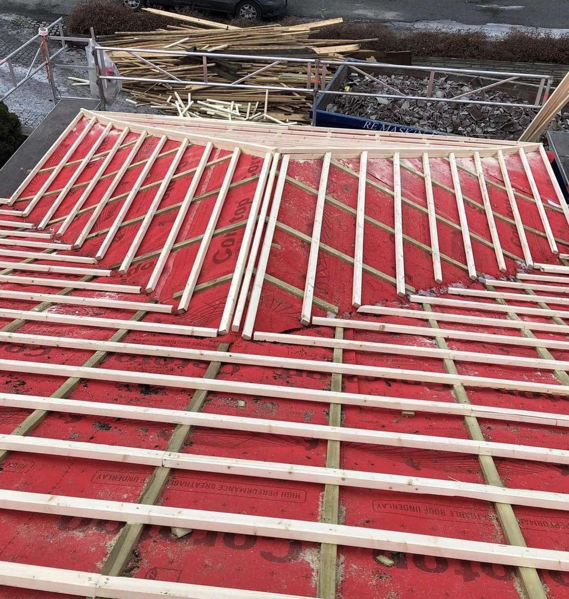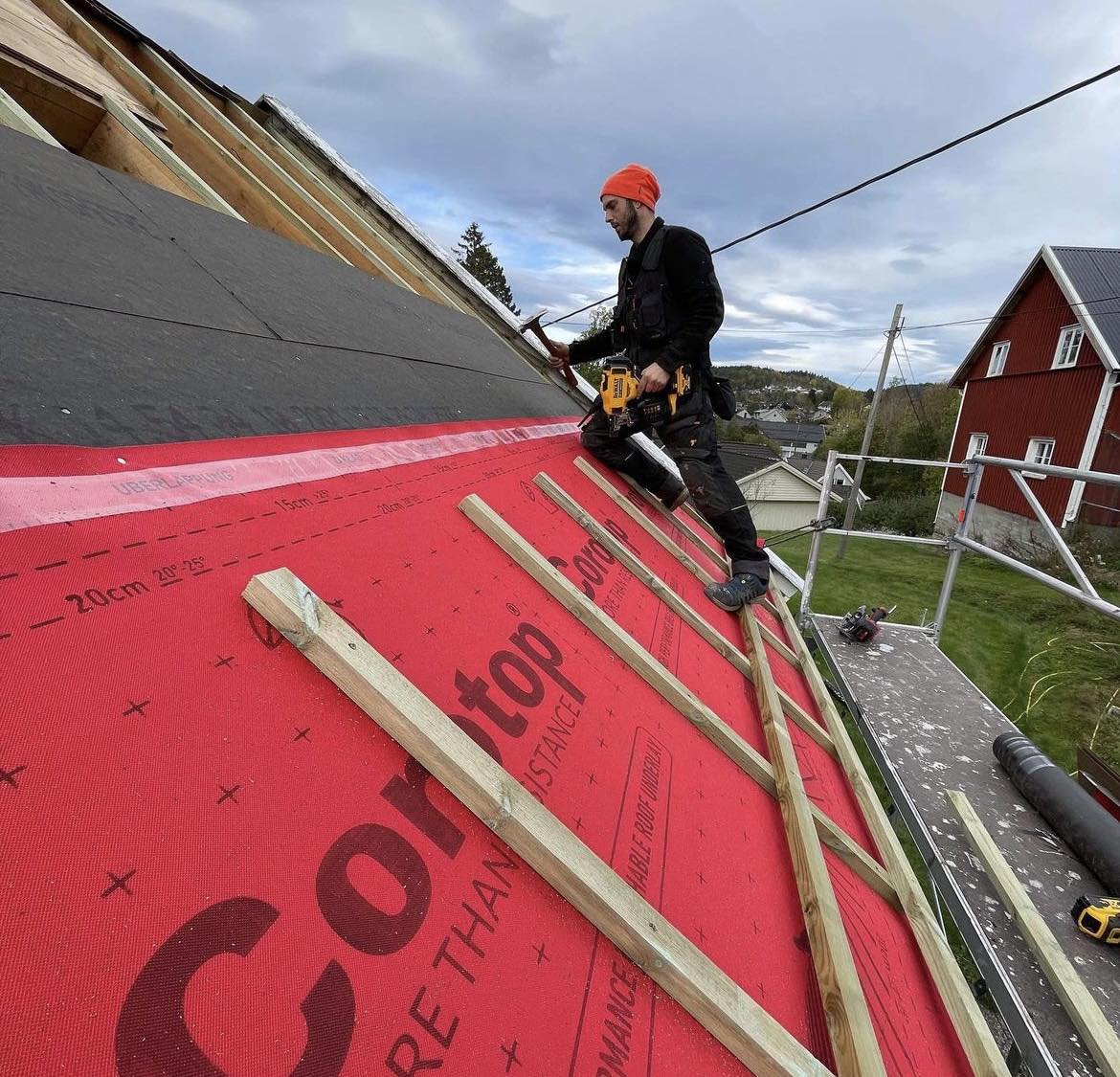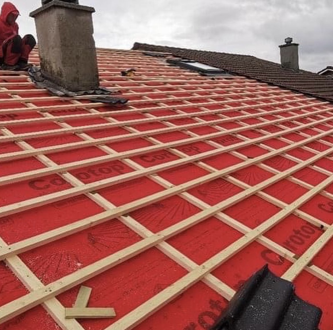 4. Установить обрешетку и контррейку высотой около 8-10 см. Места прокола мембраны гвоздями или скобами следует покрыть герметизирующей лентой.