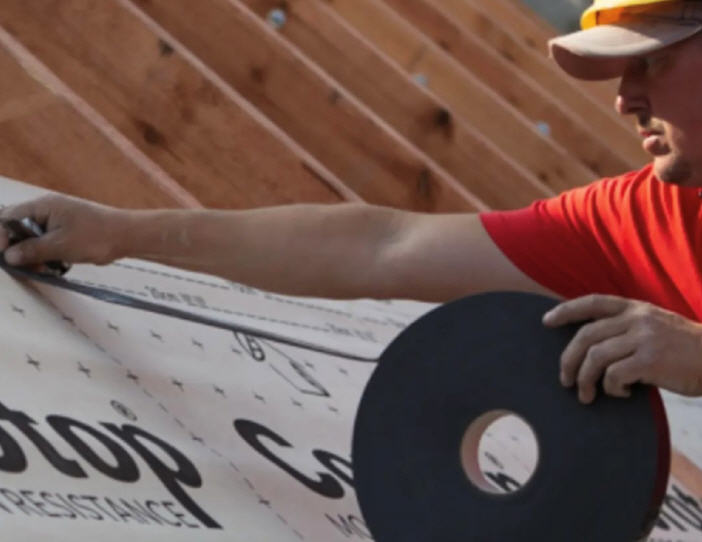 2. Для обеспечения герметичности на стропилах, приклеить полосу уплотнительной ленты COROPUR к обрешетке на стороне, которая будет прилегать к мембране и стропилам.