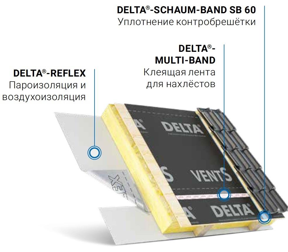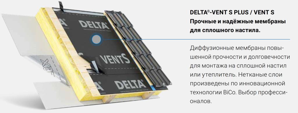 Delta VENT S - трехслойная гидроизоляционная мембрана повышенной прочности из первичного сырья для сплошного настила, применяемая как для скатных крыш с однослойной вентиляцией, так для вентилируемых фасадов и перекрытий. Срок гарантии – 5 лет!