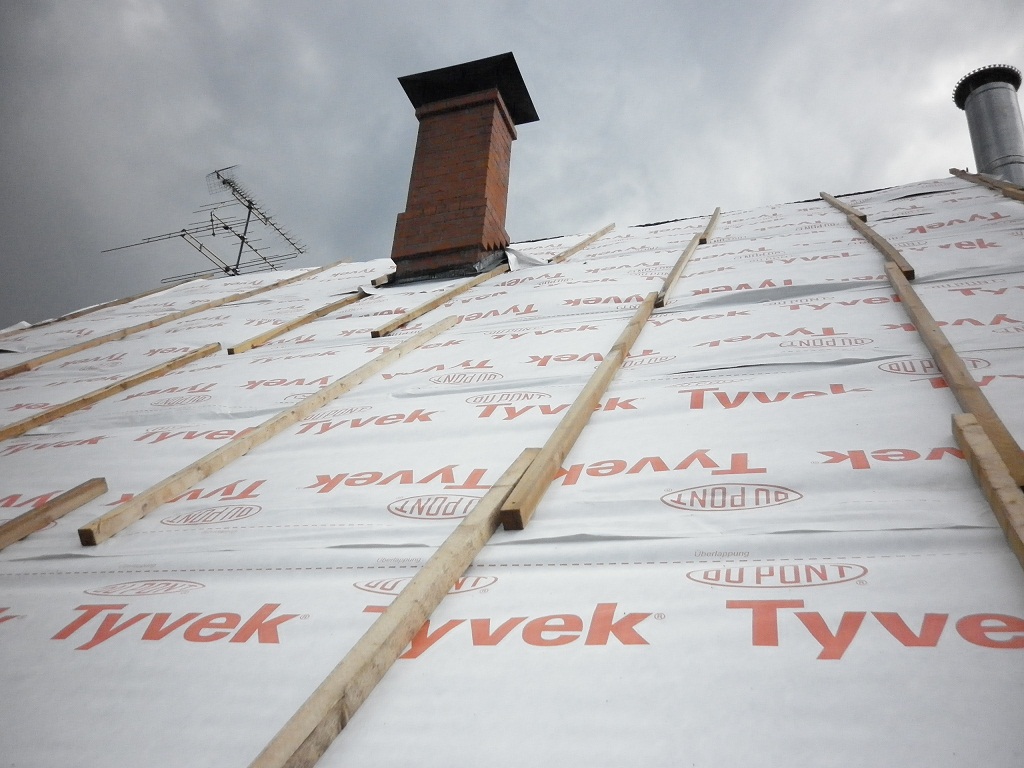 Мембрана Tyvek Soft монтируется непосредственно на утеплитель с 1 вентзазором. Маркировочная сторона должна быть обращена на улицу. Места нахлестов рулона между собой, а также места примыкания к элементам строительных конструкций проклеиваются специальными лентами и скотчами.