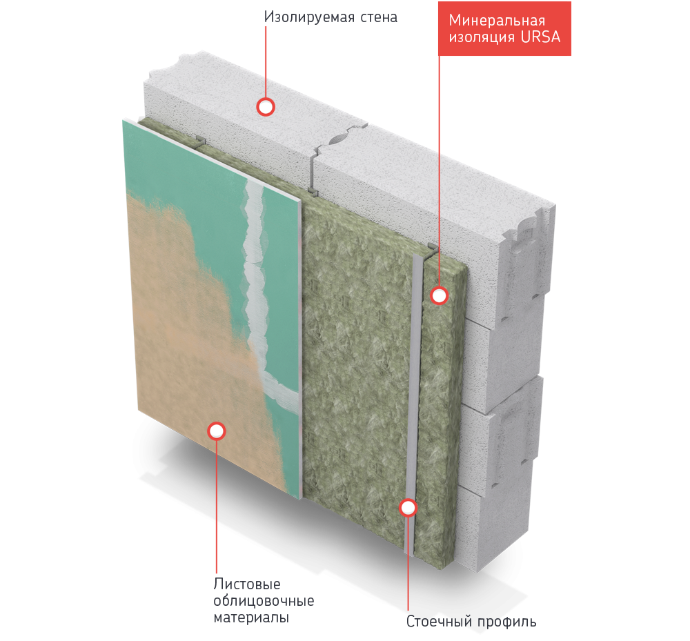 Также допустимо использование утеплителя Ursa Terra 37 PN PRO в следующих областях: